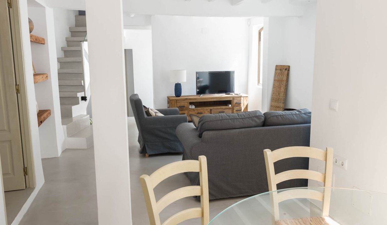 En la planta baja, nos reciben dos habitaciones, dos baños, una cocina completamente equipada, una sala de estar y un comedor, con acceso directo a una amplia terraza que nos brinda vistas impresionantes al mar y a las salinas.