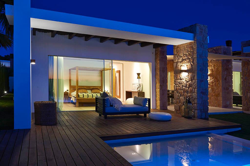 diseño contemporáneo y muebles étnicos de Bali, todo fue pensado para asegurarse de que disfrute al máximo de la comodidad durante sus vacaciones. Está ubicada en un complejo residencial con seguridad y vigilancia las 24 horas, y está a pocos minutos en coche de las playas más hermosas de la isla: Cala Conta, Cala Bassa, Cala Tarida, equipadas con clubes de playa de moda, e ideales también para familias.