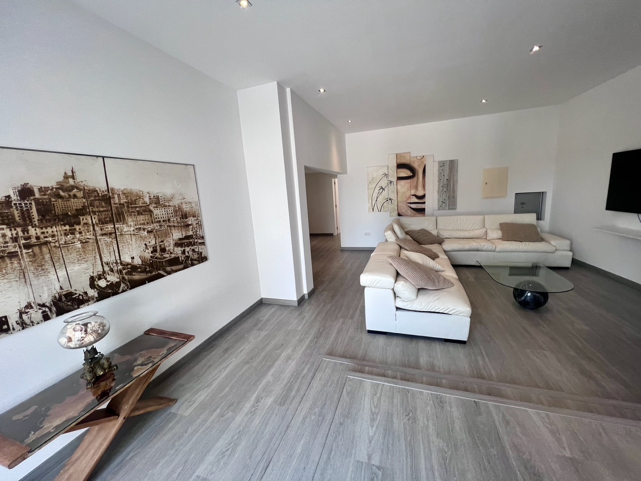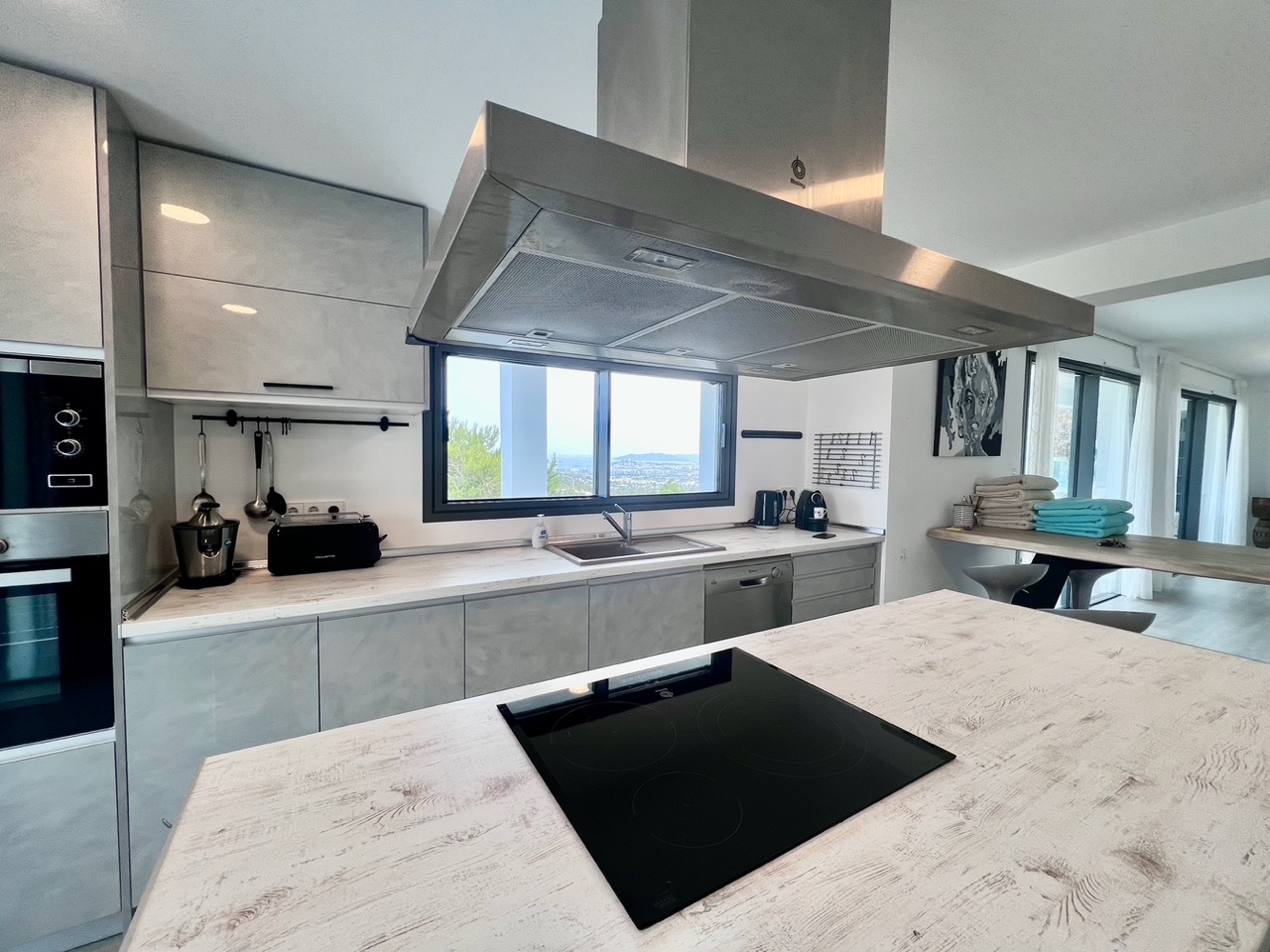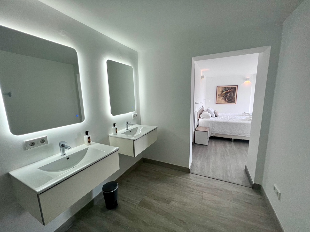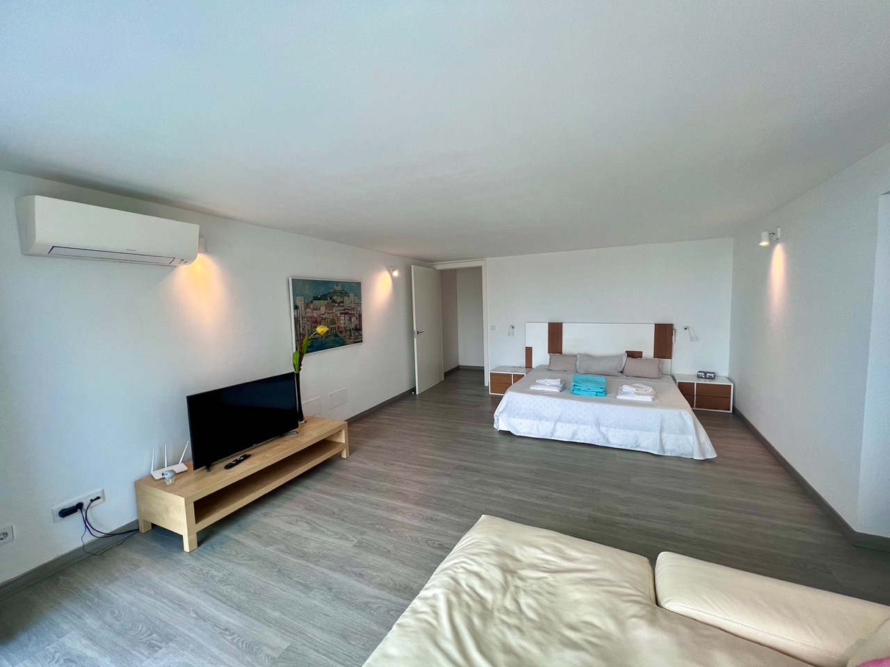 Esta hermosa villa se encuentra en una urbanización cerca de Ibiza con seguridad las 24 horas. La casa ha sido renovada este año en 2023 y cuenta con dos salas de estar, una en la entrada de la casa junto a un baño. Bajando unos escalones, encontramos el otro comedor con hermosas vistas al mar y acceso a la terraza delantera que conduce lateralmente a la piscina. Junto a la sala de estar hay una amplia cocina también con vistas al mar y acceso a la piscina a través de una puerta corredera.